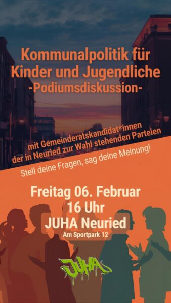 - Das JUHA führt auch für die Kommunalwahl wieder eine U18-Wahl durch, sie findet von 25.02. bis 27.02. statt. Aufgrund der Komplexität der Kommunalwahl werden dabei voraussichtlich nur Landrat/Landrätin und Bürgermeister*in gewählt. Solltet ihr entsprechende Wahlprogramme für Kreis und Kommune eurer Partei in ausgedruckter Form besitzen, bringt diese gern zur Podiumsdiskussion mit, dann können wir diese bis zur U18-Wahl kindgerecht aufarbeiten und als Hilfe zur Wahlentscheidung bereitstellen. Außerdem werden wir auf der Veranstaltung insgesamt zwei Biertische aufstellen, auf denen alle Parteien die Möglichkeit haben begrenzt Flyer, Merch etc. auszulegen. Bitte geht fair mit dem Platz um!