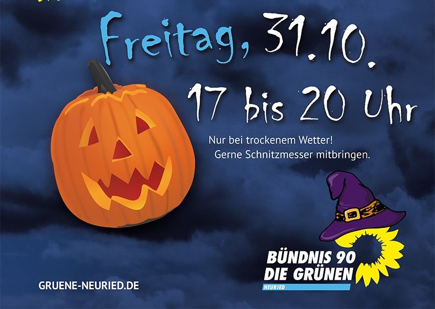 Die Halloweenfeier von Bündnis 90 / DIE GRÜNEN in Neuried hat eine lange Tradition. Das Fest findet – wie schon im Vorjahr – auf dem Ratschplatz hinter dem Maibaum statt. Am 31. Oktober von 17.00 bis 19.00 sind alle Hexen, Zauberer und Fabelwesen eingeladen Kürbise zu schnitzen, Stockbrot zu rösten. Eine Stärkung gibt es mit Kürbissuppe, Kinderpunsch und Glühwein. Jung und Alt, kostümiert oder auch nicht, alle sind herzlich willkommen.